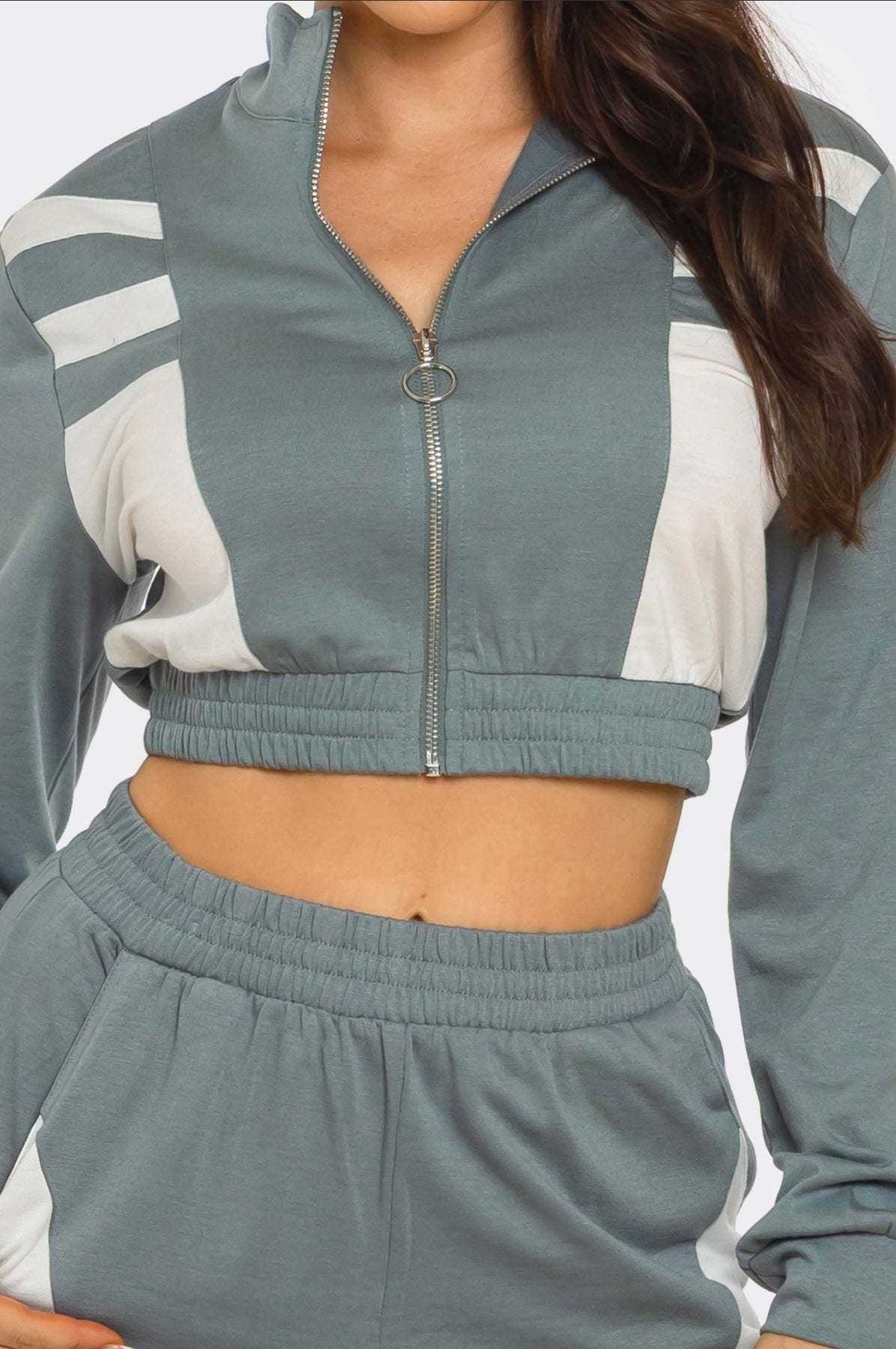 Your new go-to for comfort that still gives luxury. The Sky Lounge Set was made for travel days, airport runs, and easy errands — but it’s just as cute dressed up with your favorite heels. The cropped zip-front jacket cinches softly at the waist, while the relaxed pants feature a flattering high rise, side pockets, and contrast paneling that elongates your legs.